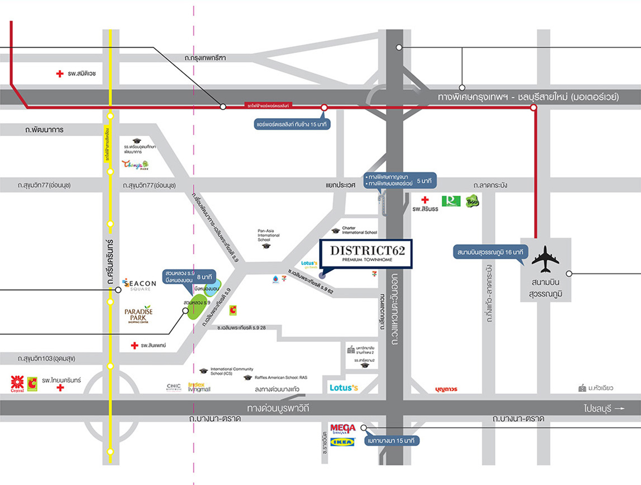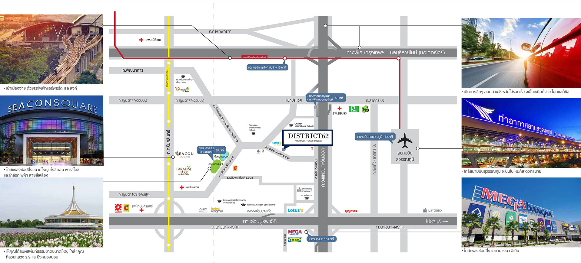 ทำเลที่ตั้ง: ถนนเฉลิมพระเกียรติ ร.9 ซอย 62 แขวงดอกไม้ เขตประเวศ กรุงเทพฯ 10250