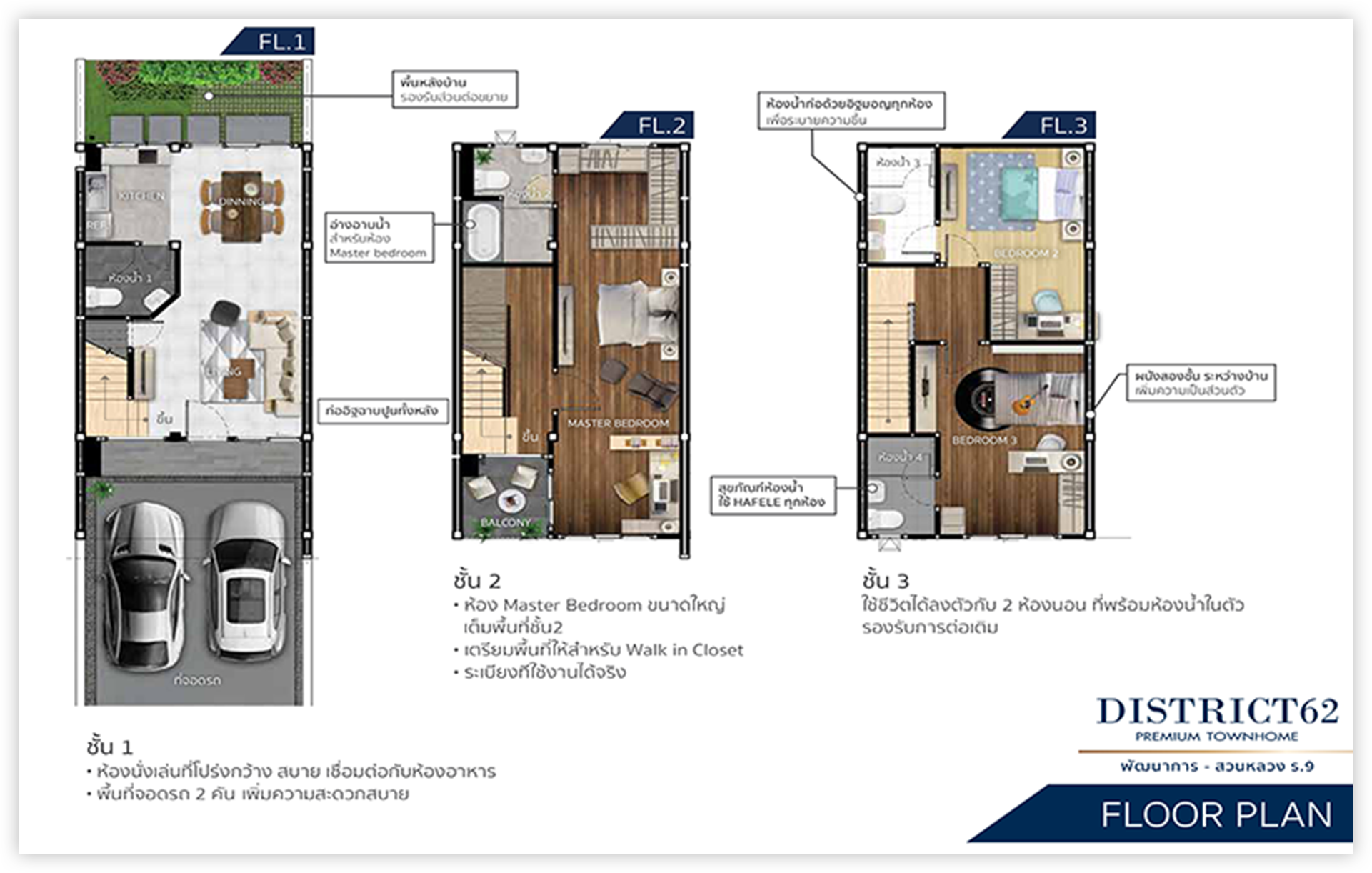 ทาวน์โฮม 3 ชั้น ฟังก์ชันห้องนอนเต็มชั้น